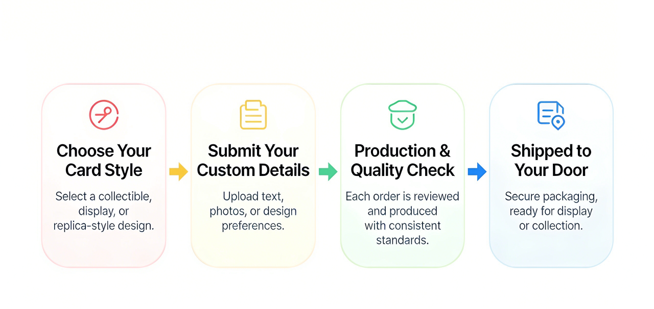 We specialize in the creation of collectible cards, custom display cards, and replica-style souvenir cards designed for display, collection, and creative use.